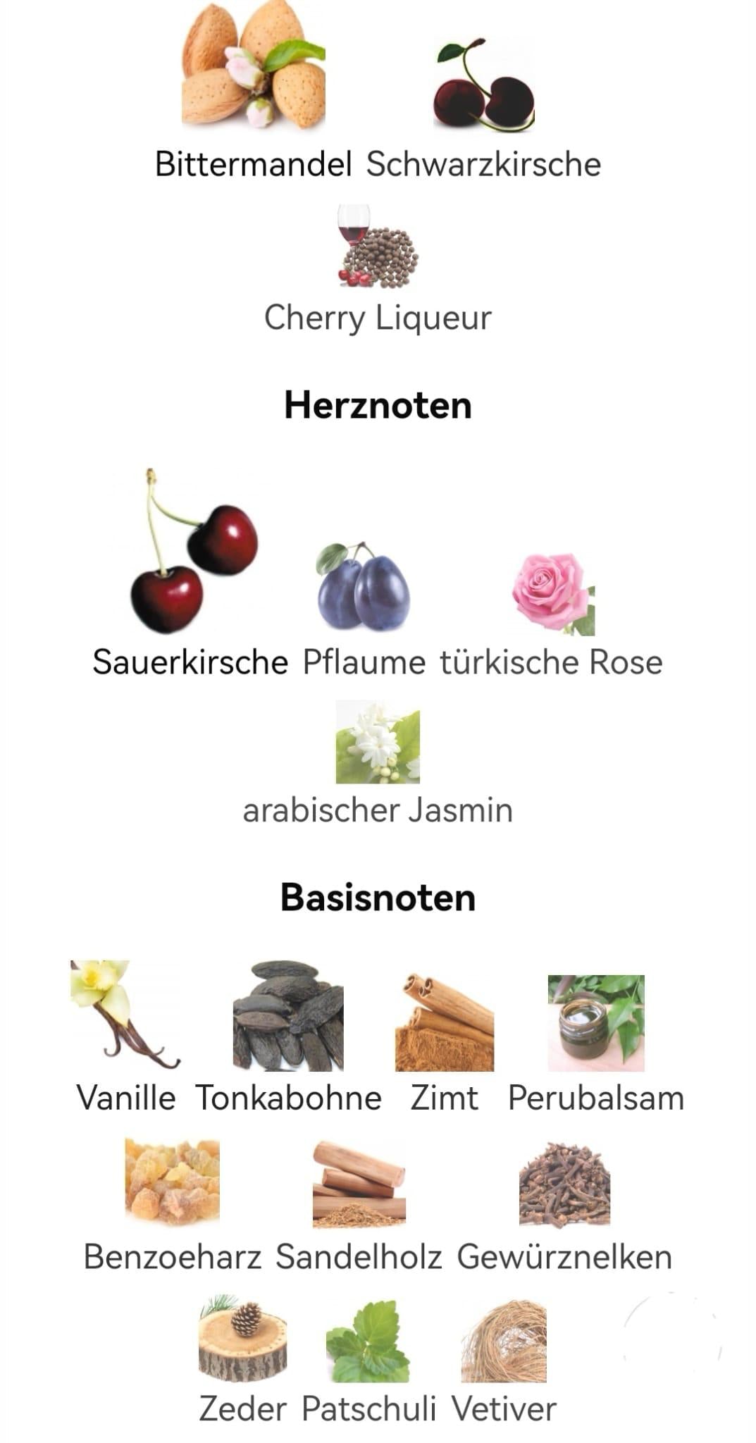 Tauche ein in die verführerische Welt von Cherry Moon und erlebe einen Duft, der die Gegensätze in Perfektion vereint. Der fruchtige, saftige Duft von Schwarzkirsche und Liqueur Griotte d'Alsace verschmilzt mit den blumigen Noten von türkischer Rose und arabischem Jasmin und weckt sinnliche, verbotene Gelüste. In der Basis vereinen sich holzige Akzente von Sandelholz, Vetiver und Zedernholz, die dem Duft eine erdige, warme Tiefe verleihen.