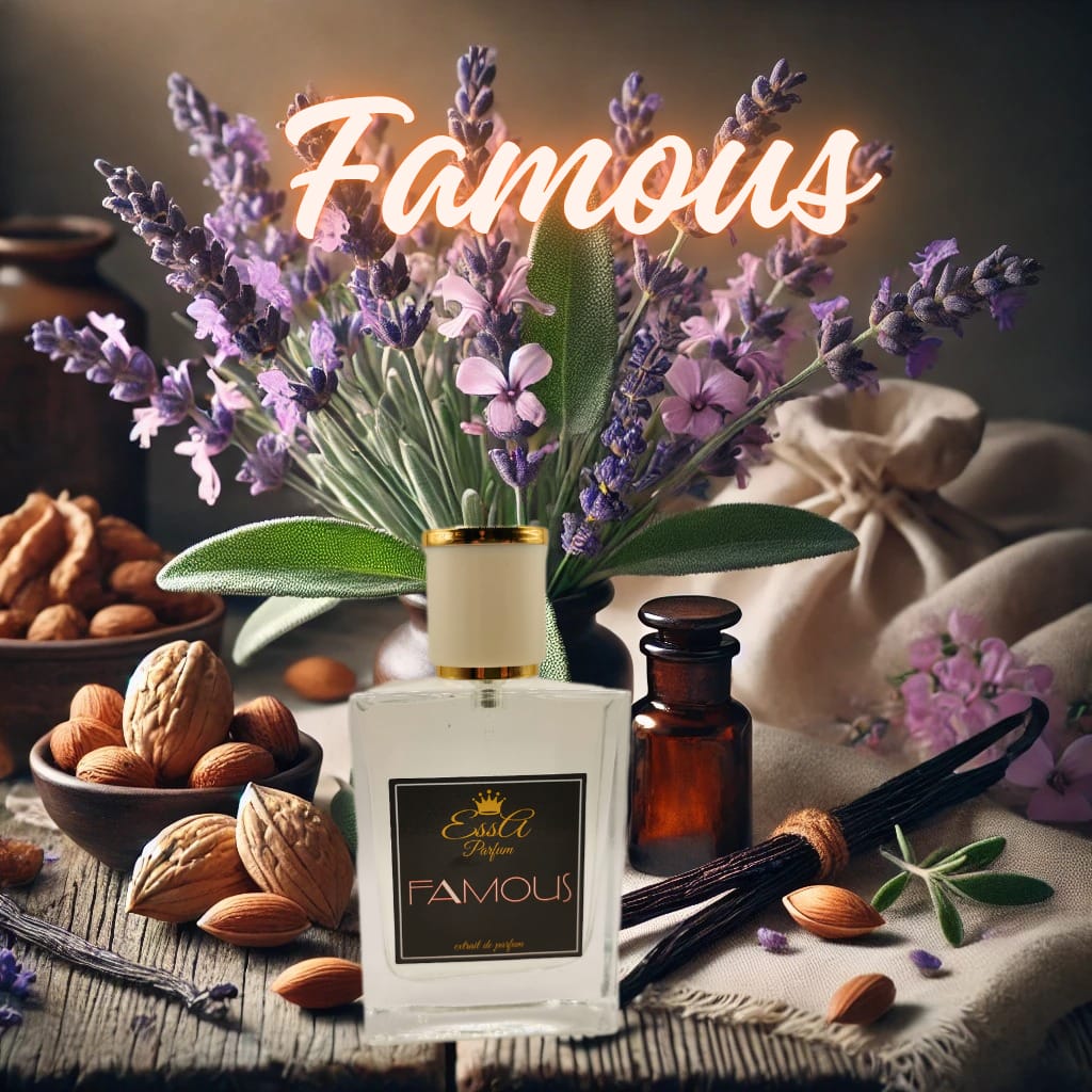 Lass dich von Famous verführen und erlebe einen Duft, der sowohl Kraft als auch Eleganz vereint. Die erfrischende Kombination aus Lavendel und Muskatellersalbei öffnet den Duft mit einer klaren, aromatischen Frische. Im Herzen treffen Leder, Bittermandel und Vanille auf die feine Iris, was dem Duft eine luxuriöse Tiefe verleiht. In der Basis verleihen sinnliche Akzente von Tonkabohne, Cashmeran, hellen Hölzern und Ambra dem Parfum eine warme, holzige Struktur, die langanhaltend wirkt.